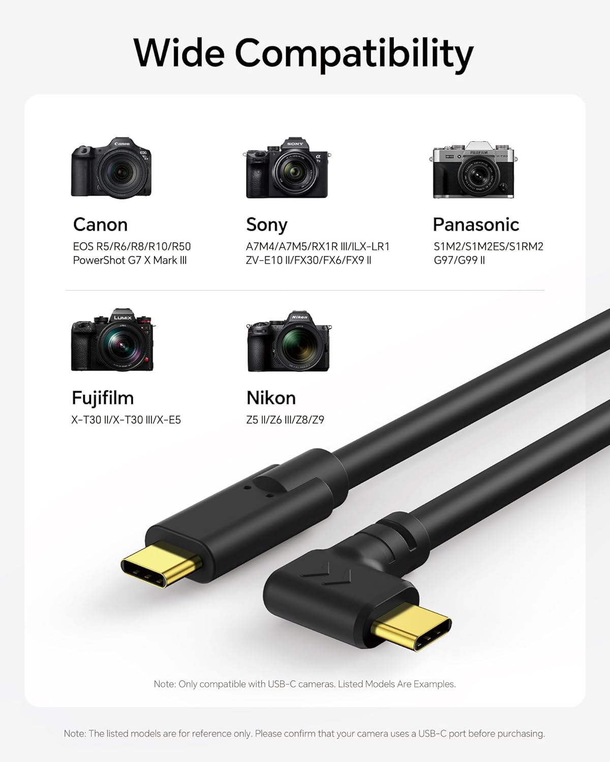 10ft-USB C Camera Transfer Cable, USB 3.2 Gen2 10Gbps Data Transfer & Live View Cord,Thickened Copper Core,Ideal for Pro Photographers, Photo Enthusiasts & Vloggers