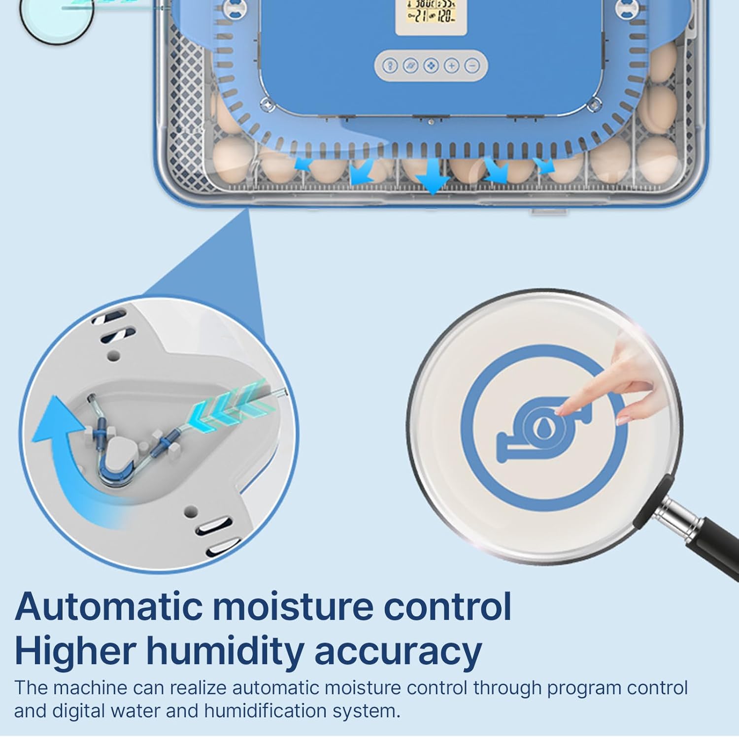 70 Eggs Incubator 3-IN-1 for Incubation Hatching Brooding with Adjustable Egg Tray LCD Digital Display Automatic Egg Turning Built-in Egg Candler Light Automatic Temperature Humidity Control