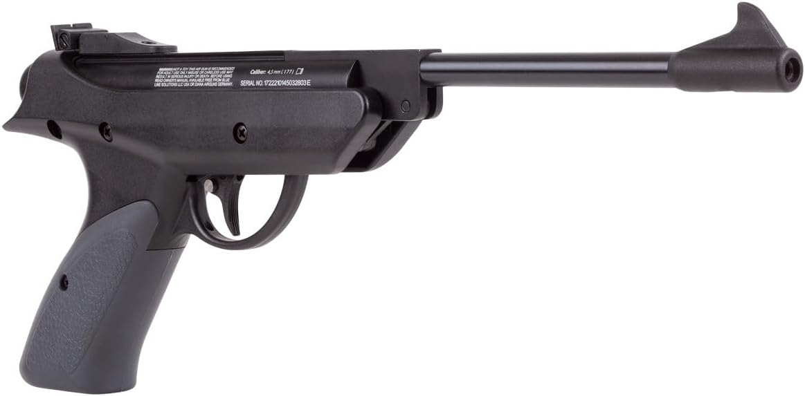 Diana P-Five Air Pistol Breakbarrel Action Spring-piston power plant Single shot Uses .177 caliber pellets Rifled barrel Max. velocity: 400 FPS (lead pellets) Max. energy: 1.5 FPE Textured grip Fixed front sight Windage and elevation adjustable rear sight Milled 11mm dovetail optics rail Manual safety Barrel length: 8.7" Overall length: 15" Weight: 2 lbs. ... Diana P-Five Air Pistol, .177 cal ...