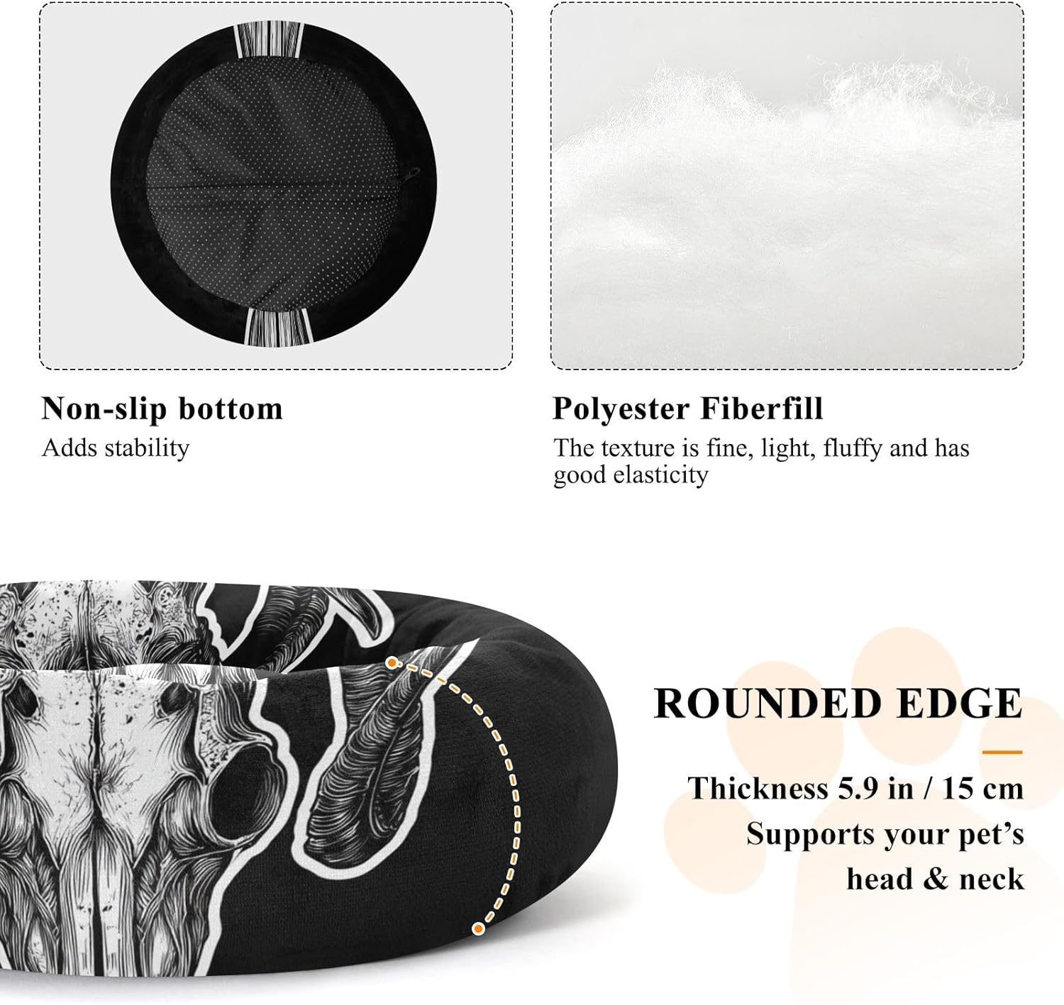 Size: XS: Diameter: 13 inches(sleeping area diameter: 10.2In); S: Diameter: 15.7 inches(sleeping area diameter: 13In); M: Diameter: 20 inches(sleeping area diameter: 17.3In). Small Cat Pillow Bed design, suitable for daily indoor use, allowing your beloved pet to take a comfortable nap. Material: Polyester + Filled + Drip Plastic. Our Cat Pillow Bed is designed in a donut style and made of soft plush fabric, which has a fine and smooth touch and can bring a warm and comfortable feeling to pets. Product Design: The overall shape is circular with raised edges, allowing your dog and cat to curl up for fun. Cat Pillow Bed provides support for the head and neck, promoting a sense of security without worry. Applicable Scenarios: This comfortable bed can be used by pets such as cats and dogs. Cat Pillow Bed can be used in scenarios such as living rooms, floors, sofas, cages, and cars. Easy To Clean: This Cat Pillow Bed is also designed with a detachable and washable structure, making it convenient for pet owners to clean it regularly and keep the bed clean and hygienic, which is beneficial to the health of their pets.