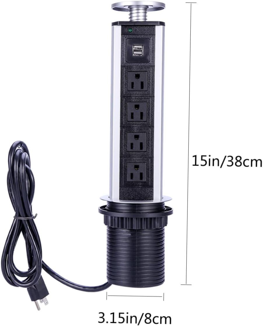 Package Include 1 x Electrical Data Center Pull Up Power Outlet Tabletop Worktop Power Socket Plug and 2 USB Ports Safe Outlet (US Plug) Characteristics - Voltage: AC110V up outlet for kitchen countertop - Cable length: 190cm up electrical outlet. - Material: Aluminum alloy and PC out outlet. - Size: Approx. 38.5 * 10 * 10 cm/ 15.2 * 3.9 * 3.9 inch (L*W*H) up outlet with USB. - Electric : 16A pull up socket. - Color: Black. - Power: 3500W. - USB output: 5V 1A. - to all relevant safety standards up outlet - With separator in the socket to prevent from electric shocking up socket - Reliable electrical outlet with -friendly pull up or down mechanism desktop socket - for use in Kitchens, offices and hotels mounting in desktop and counter topsGoods Descriptionout outlet Note:This item comes with US plug, please confirm the voltage of your area before purchasing.up outlet for kitchen countertop The item is a tabletop pulling up socket which contains plug outlets and 2 USB ports.up electrical outlet It enables you to to three mains powered units and charge 2 USB devices, can add extra power sockets without the hassle