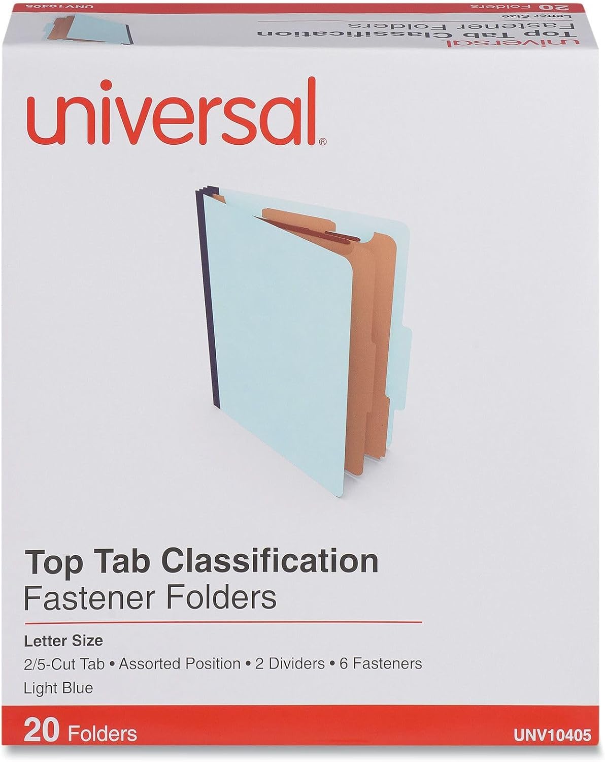 Universal Six-Section Pressboard Classification Folders, 2.5" Expansion, 2 Dividers, 6 Fasteners, Letter Size, Light Blue, 20/Box