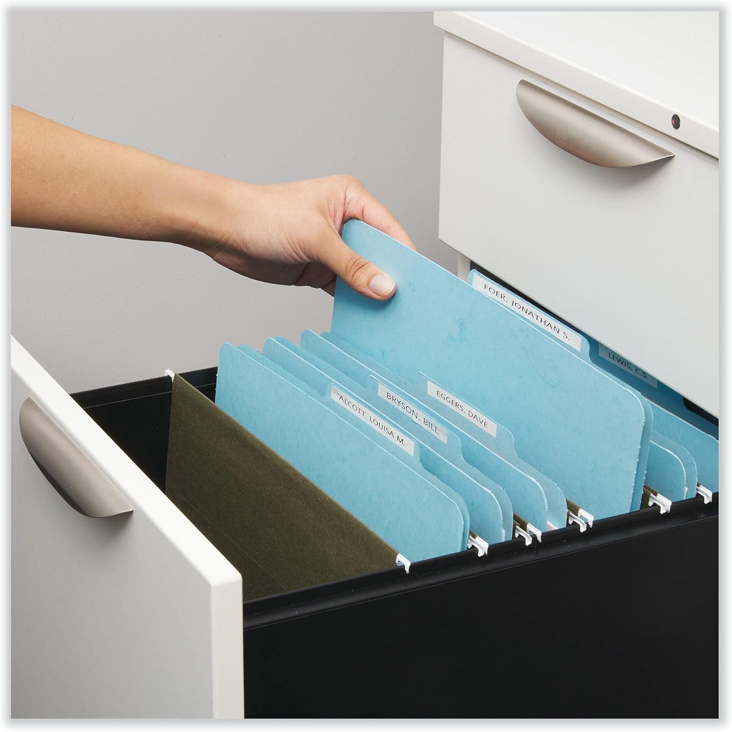• Durable, 25 pt. pressboard file folders.